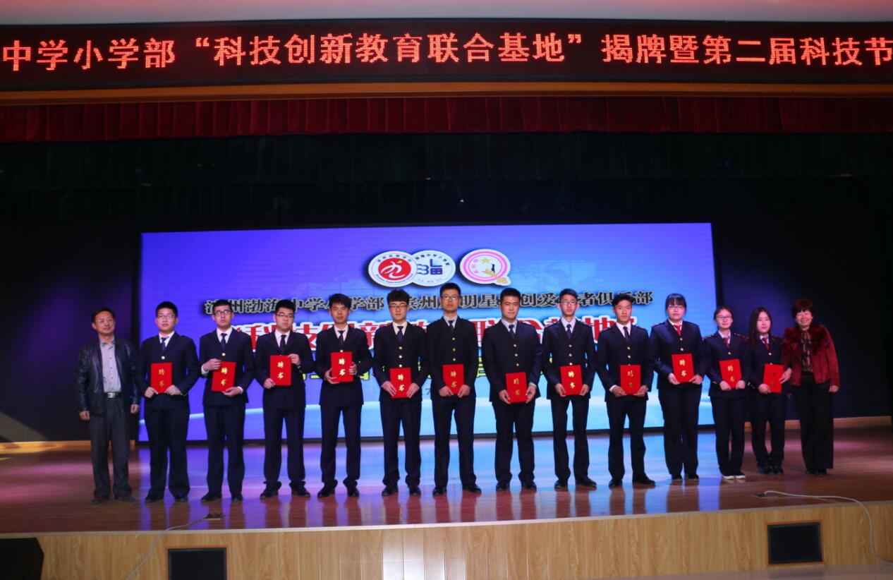 2017年4月1日,滨州市渤海中学小学部四楼报告厅举行了隆重的“科技创新教育联合基地”揭牌曁校园科技节启动仪式。滨州市科协副主席田雷、公司党总支书记李守峰、渤海教育集团总经理吴秀芹、渤海中学小学部董事长张玉娥、公司团总支书记(员工科长)何秀国、市科技馆工程维修部部长顾志谦等领导出席活动仪式。