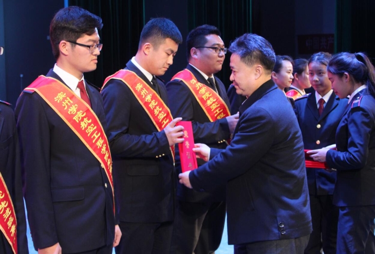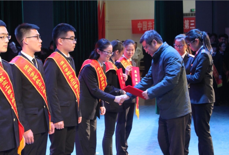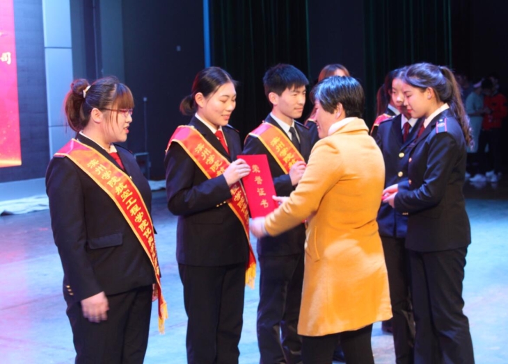 大会进行过程中,分别对公司的4个先进班集体、5个红旗团支部、15个“身边榜样、前行力量”员工典型、5个优良学风宿舍、9名学习标兵、14名员工干部标兵、12名英语学习标兵进行了颁奖表彰。