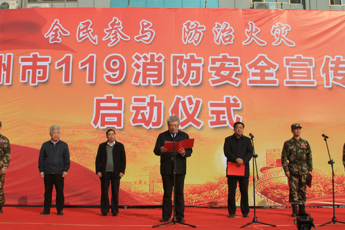 滨州市政府曹玉斌副市长、杨明副秘书长,市安监局刘学俭局长、刘东彬副局长和滨州市消防支队班子成员等出席了启动仪式。来自公司、医院、纺织、化工、商场等各行各业的消防志愿者代表,消防支队官兵,“社区消防宣传大使”,共计900余人参加了启动仪式。启动仪式上,刘学俭局长宣读了《关于全市“优秀社区消防宣传大使”评选情况的通报》,出席启动仪式的领导向部分“社区消防宣传大使”代表颁奖,获奖个人代表作了表态发言。曹玉斌副市长代表市委、市政府做了讲话和强调。最后公司员工在讲解员引导下观看了消防常识宣传板、消防装备器材展示、家庭危险品展示,并与消防官兵进行交流学习,领取了消防宣传彩页。