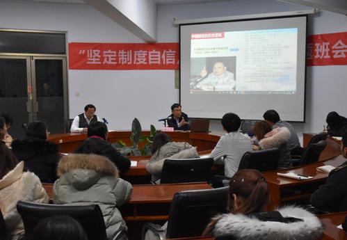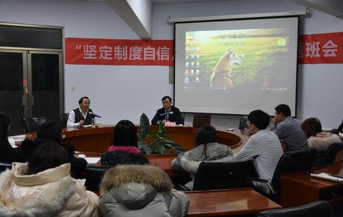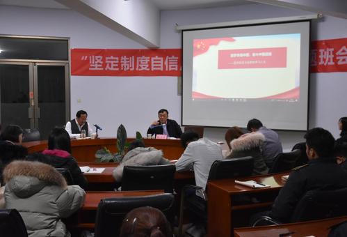 12月3日晚,杨玉森副董事长深入其所联系班级,组织召开主题班会,宣讲党的十九届四中全会精神。