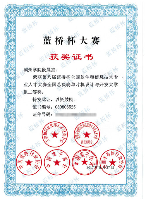 | 蓝桥杯电子专业人才竞赛 | 国家级 | 一等奖 | |||||