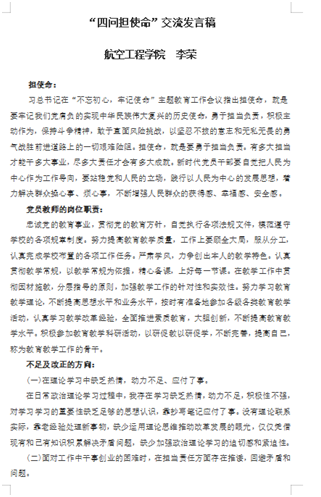 为巩固拓展“不忘初心、牢记使命”主题教育成果,营造庆祝中国共产党成立 99 周年浓厚氛围,航空教工二支部开展了“不忘初心、牢记使命””主题党日系列活动。7月13日进行了“四问担使命”学习讨论。
