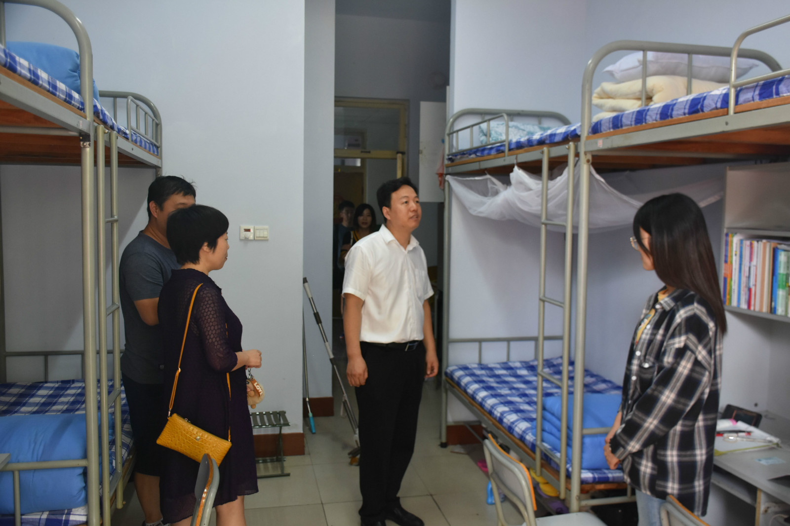 为进一步了解公司员工返校情况,8月23日上午,公司党总支书记王燕、经理陈立刚、党总支副书记王泰宁和全体辅导员走访员工宿舍并慰问返校员工。