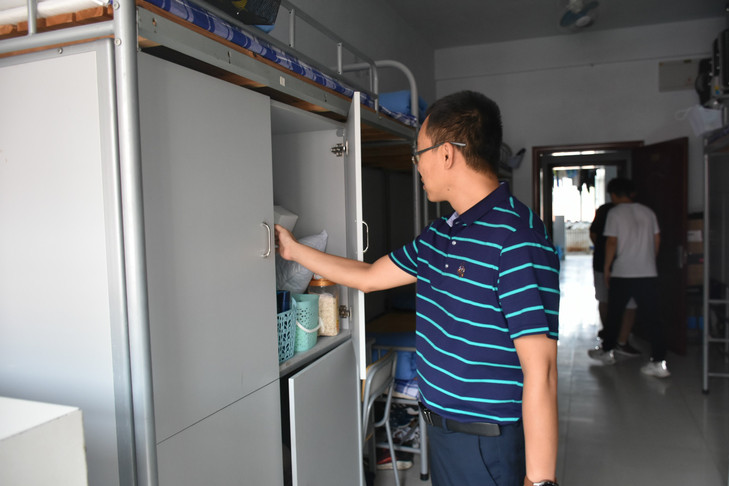 王泰宁书记带领员工科辅导员深入公司在2#、3#、16#和17#公寓楼的宿舍,开展了全面细致的排查活动。本次排查的重点涉及宿舍有无私拉乱扯电线、使用大功率电器、吸烟、明火器具、劣质插排、养宠物等违规现象,并对管制刀具、棍棒、酒瓶等违规物品进行了检查。检查过程中对存在安全隐患的宿舍予以记录,现场进行了整改