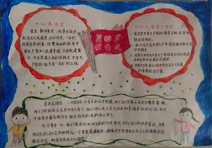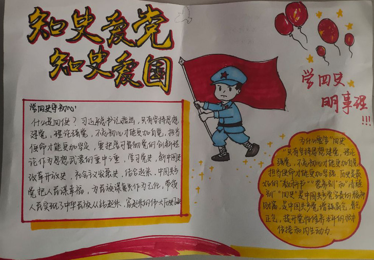 为贯彻落实“四史”教育总体要求,推动老员工知史爱党、知史爱国,4月6日至4月8日,哈哈体育举办了“学四史,明事理”手抄报比赛,公司全体在校老员工参加。