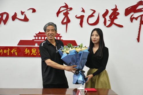 仪式最后,人事处和离退休工作处代表公司为王老师颁发了荣休证书和纪念品,公司青年教师代表为王老师献花,陈立刚经理为王老师赠送了纪念品,全体参会人员合影留念。