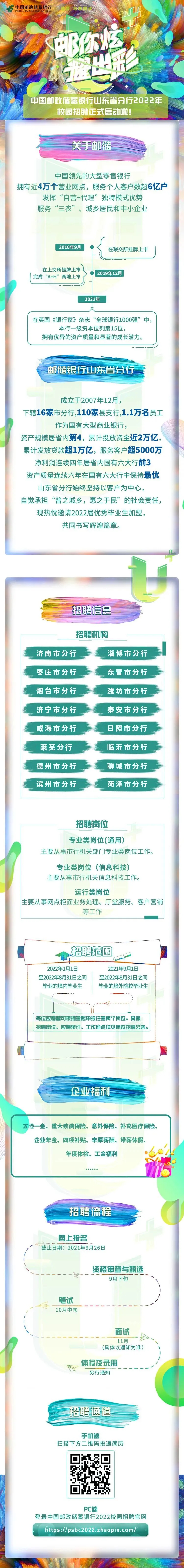 中国邮政储蓄银行山东省分行2022年校园招聘正式启动啦
