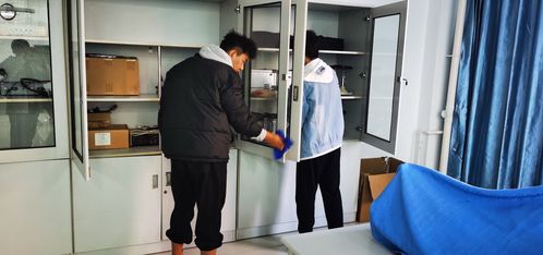 活动伊始,实验教学中心负责人郭洪岩和张成亮两位老师带领同学们参观实验室、说明清扫要求和注意事项。随后,员工们戴好手套、拿好卫生工具开始了这次的清洁任务。在清洁过程中,大家认真负责,按老师要求,做好了实验仪器的分类整理、清理实验台和地面等事情。在他们的辛苦劳动下,各实验室内的实验器材被归类的整整齐齐、井然有序,实验桌面、地板也被擦拭干净,实验室焕然一新。看到整齐的实验室,大家感受到了前所未有的成就感以及为老师、同学做好事带来的喜悦感,他们纷纷表示,自己的劳动能为同学带来整洁的实验环境是很值得的。活动结束后,郭洪岩和张成亮两位老师对大家的劳动成果表示了肯定,并对他们的辛苦付出表达了诚挚的谢意。