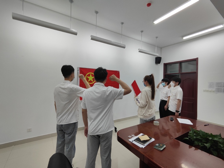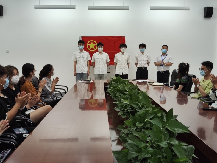 会上,团总支书记秦承宽宣读入团名单并为新团员佩戴团徽。接下来,在电子信息工程专业2018级本科3班团支书夏乐同学的带领下,新老团员共同举起右手,面向团旗庄严宣誓、重温入团誓词。“我志愿加入中国共产主义青年团,坚决拥护中国共产党的领导……”庄严的誓词凝结着共青团员坚守的初心使命,在高喊出自己名字的那一刻,团员的使命光荣而艰巨。