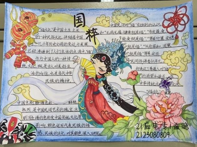 本次活动以经典图书分享、主题绘画、书法、手抄报的形式开展,吸引了大量同学踊跃报名。活动作品征集过程中,同学们紧紧围绕弘扬优秀传统文化这一主题,分享了《尚书》、《朝花夕拾》等经典书目,绘制了一幅幅形态各异、色彩斑斓的书画作品,创作了一张张图文并茂、丰富详实的手抄报,用心书写每一笔笔画、每一个汉字,尽其所能的展示自身书法的才能。活动最终征集优秀作品53份,具有代表性的10份作品在“航院e家”微信公众号平台进行了展示。同学们纷纷表示:此次活动形式新颖、丰富有趣,大家在感知传统文化魅力与价值的同时,意识到了弘扬传统文化的重要性。