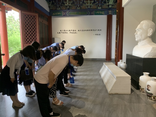 接下来,全体党员来到周恩来纪念馆广场,在周恩来总理雕像前肃立鞠躬,以此追思老一辈无产阶级革命家的丰功伟绩,学习总理不朽的革命精神。