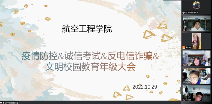 会上,辅导员老师结合国家和公司关于网络安全和网络管理的相关文件和法律法规,引用近期公司发生的热点案例,强调网络不是法外之地,并倡议同学们通过正确的渠道合理表达诉求,正确使用网络工具,做到依法上网、安全上网、理性上网、文明上网、适度上网,养成崇德向善、诚实守信、健康文明的网络行为习惯,共同营造一个安全、文明、健康的网络空间。随后,辅导员老师领学了学工处下发的《滨院人,快来看!关于疫情防控形势的重要提醒》,讲清当前疫情防控的严峻形势,引导同学们深刻认识防疫工作的重要性。同时,通过高校疫情防控警示案例讲解宣传公司的疫情防控要求,学习疫情防控期间学习生活健康指南,引导同学们积极调整个人心态,主动适应疫情背景下的学习节奏和生活方式。最后,辅导员老师还针对网络电信诈骗、宿舍安全卫生等问题进一步作了强调和说明。