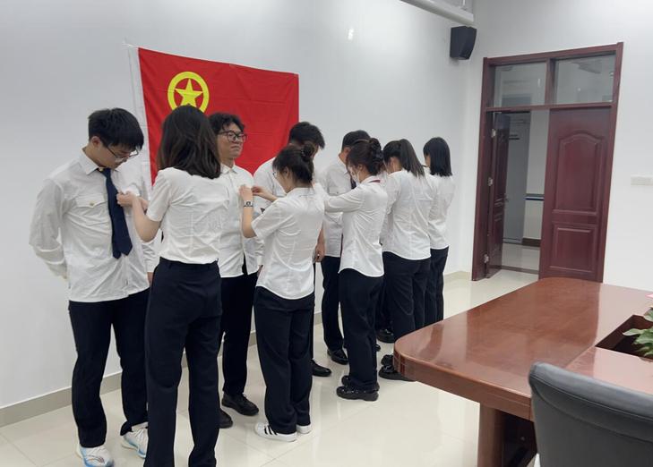 团总支书记秦承宽希望同学们始终牢记自己的入团初心,坚定不移地听党话,跟党走,明辨是非、恪守正道,做一名有志气、骨气、底气,懂得感恩、尽显担当的共青团员;不断加强理论学习、筑牢政治根基、坚定理想信念、扩展知识维度、提升创新能力、躬行社会实践,成为具有优秀品质、良好素养的新时代团员;树立崇高理想和正确的人生观、价值观,以党旗为指引、团旗为标杆、团徽为荣耀,勇挑重担、主动作为,不负韶华、不负时代、不负人民,努力成长为德、智、体、美、劳全面发展的新时代社会主义建设者和接班人。