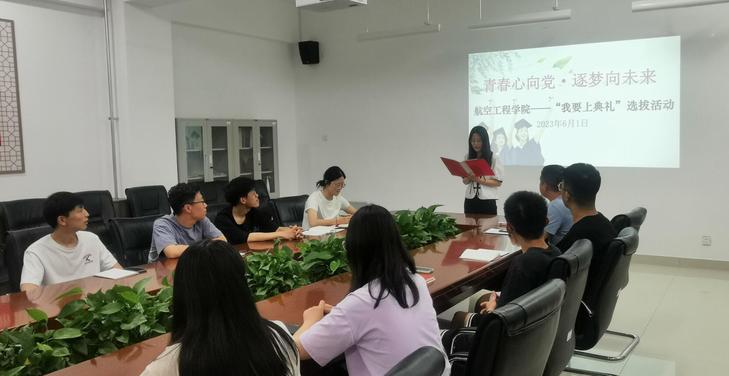 6月1日,哈哈体育在航空实训南楼3-215会议室举行“青春心向党·逐梦向未来”——“我要上典礼”毕业生发言代表选拔活动。经各班推选的8名毕业生发言代表参加了选拔活动,员工科长秦承宽和员工党支部委员担任选拔活动评委。