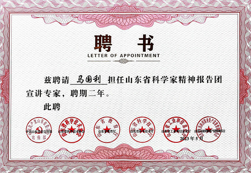 马国利教授入选山东省科学家精神报告团首批专家