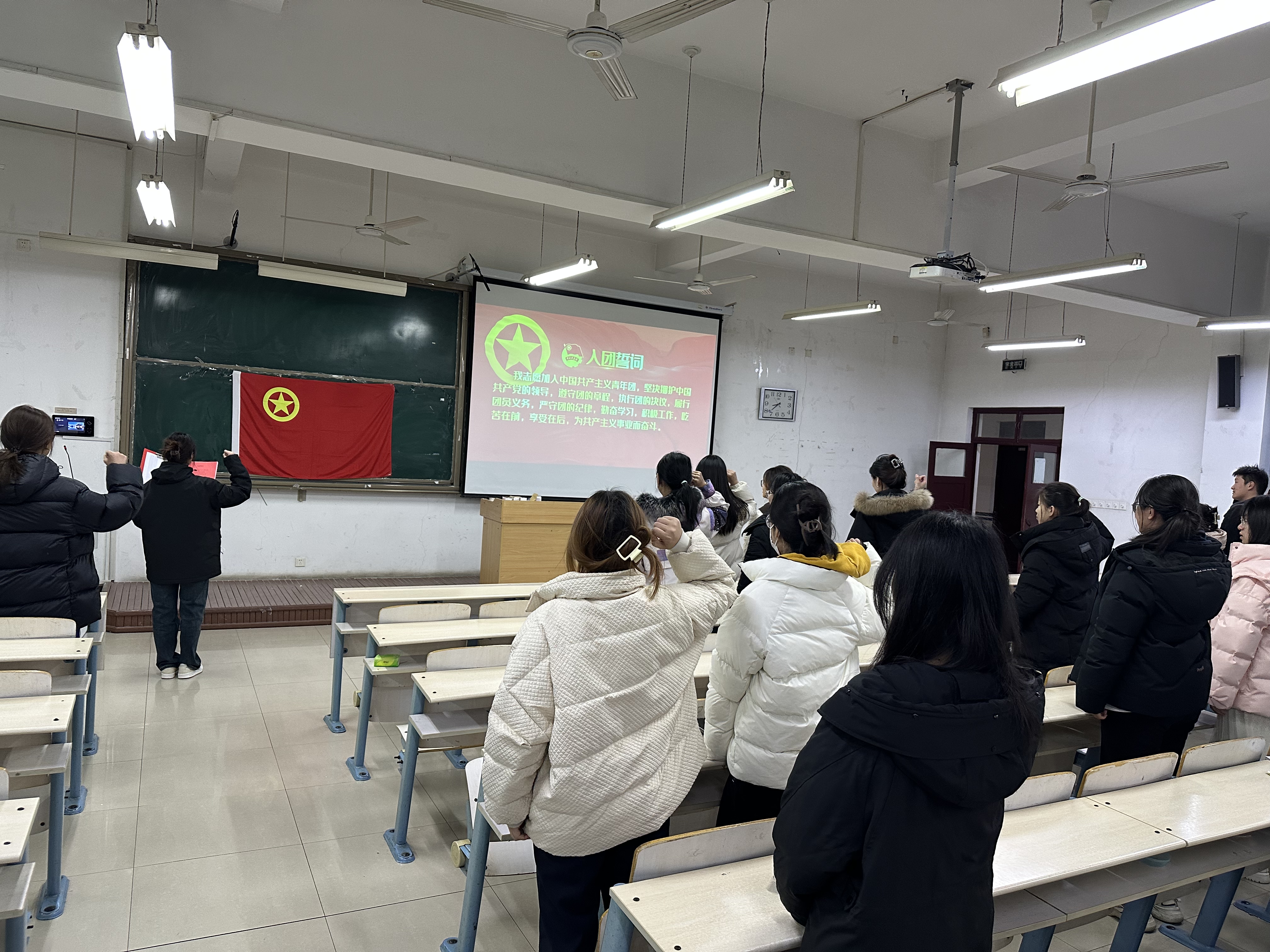 为进一步加强共青团组织队伍建设,有效培养青年对党和国家的朴素感情,推动共青团事业发展,12月7日晚,哈哈体育团总支在工科楼2-112举行2023下半年新团员入团仪式,本期34名新团员及各班团支书参加,辅导员许艺美主持仪式。