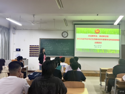 在主题团日活动中,辅导员许艺美以2023年5月1日发表的“习近平给中国农业大学科技小院的同学们的回信”内容为先导,带领各团支部成员感受回信中习近平总书记对青年一代的殷殷嘱托,通过了解“科技小院”作为一批有志青年奋斗在田间地头,用科学技术为我国“三农”建设创丰创收的故事,激励了同学们要保持勤奋学习、艰苦奋斗的精神,鼓励青年学子在学有所成之后投身到祖国建设之中,用青春热血书写时代华章。