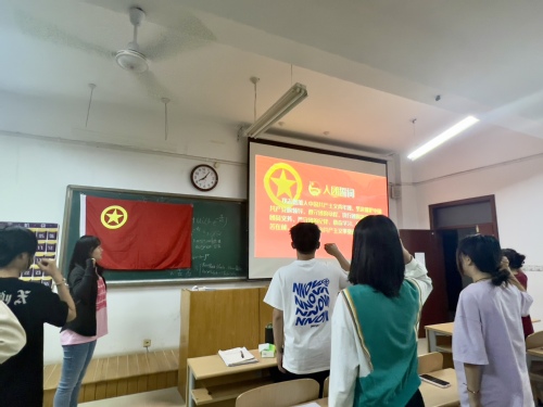 电子信息工程本科2022级4班团支部书记石晰硕表示,在学习电子信息工程的过程中也要把课堂学习和乡村实践紧密结合起来,在自己所处的历史方位吃苦耐劳,不辜负党的期望、人民期待、民族重托,为强国建设、复兴伟业贡献青春智慧和力量。来自电子信息工程本科2022级4班团支部的马传旭表示,在2018年的时候科技小院的同学们住的房子很简陋、院子满是泥泞,但就是在这样艰苦的条件下,深刻体会到中国农业大学的老师员工真的如同习近平总书记指出的那样“把论文写在中国大地上”,体会到“解民生之多艰”的精神。最后,伴随着一首慷慨激昂的《光荣啊,中国共青团》共青团团歌,各团支部全体成员重温入团誓词,本次主题团日圆满结束。