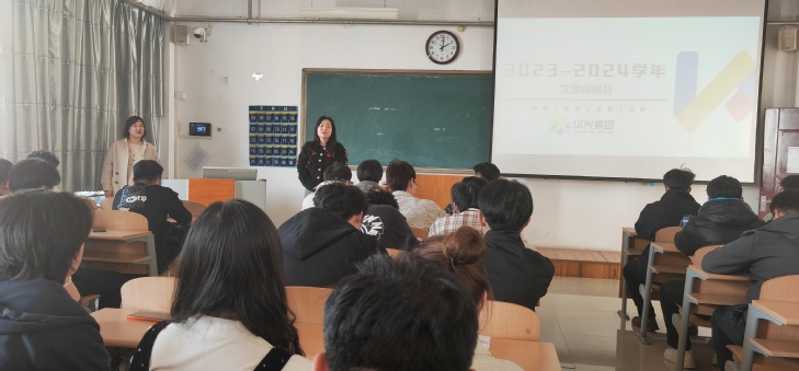 会上,许艺美首先向同学们说明了举行本次说明会目的和意义,同时对本次会议的主题进行了强调。华兴集团学工部主任刘廷廷围绕实训解析、实训安排、实训项目、实训生活、实训管理、实训成果六个方面进行了详细的讲解,她指出,同学们将在企业的实际工作环境中,参与到真实的项目中去,体验从项目策划到执行的全过程,同时说明实训不仅是对同学们专业知识的一次检验,更是对其解决问题能力、团队协作能力和创新能力的一次挑战。在实训过程中,同学们可以更好地理解课堂上学到的理论知识,并将其转化为解决实际问题的能力。最后,基地老师分享了往届员工在实训中取得的成果,这些成果体现了员工们的个人成长,激励着在座的每一位员工,让他们对即将开始的实训充满期待。