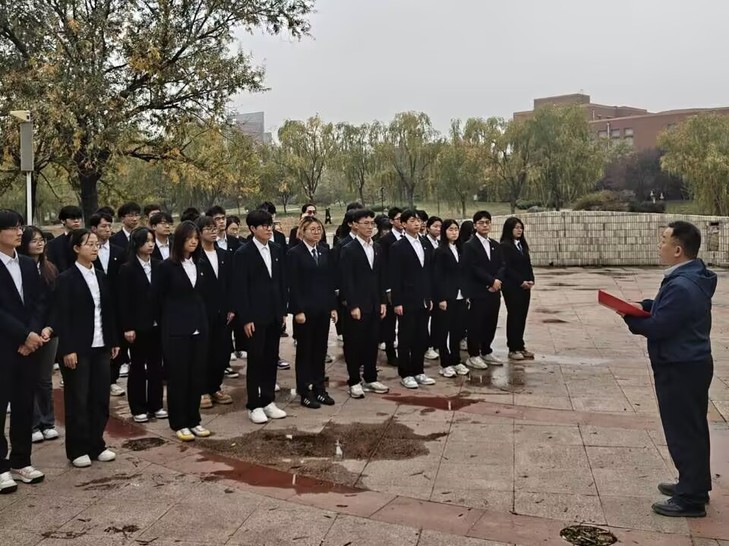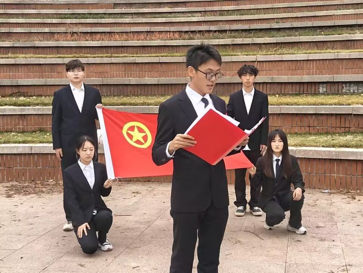 活动最后,团总支书记赵望锋对新团员的加入表示诚挚的欢迎,并对新团员未来发展提出三点希望:一是坚定理想信念,秉持爱国之心,找准政治定位,坚守爱国底色;二是锤炼品德修为,常怀感恩之心,严于律己,宽以待人;三是发挥先锋模范作用,培育奉献之心,积极参加活动,带动周围同学共同进步。