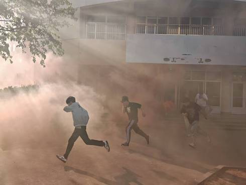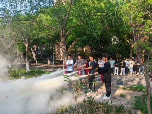 演练开始前,辅导员耿晓阳向同学们传达了公司制定的《消防疏散演练实施方案》,并说明了本次消防疏散路线和火灾逃生要点,要求同学们在演练过程中弯腰低头、湿巾捂鼻、靠右行走,有序疏散,不推挤、不逆行、不喧哗。警报声响后,保卫处工作人员释放浓烟模拟火灾现场,全体同学按照预定路线快速有序疏散。同学们沉着冷静,用湿毛巾捂住口鼻,采取低姿小跑的方式,在短短几分钟内全部安全撤离至指定集合点。演练结束后,保卫处工作人员现场演示了灭火器等器材的正确使用方法,并对同学们“手把手”教学,引导同学们掌握“提、拔、握、压”四步灭火法,让同学们进行实操练习,真正掌握灭火器的正确使用方法。