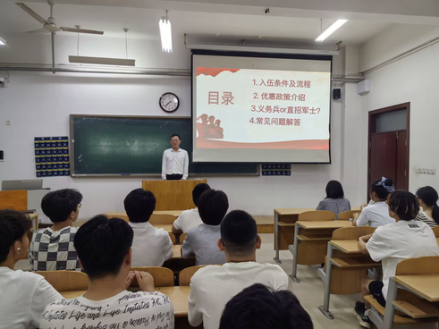 会上,班主任以公司退役复学员工的成长故事为切入点,生动讲述了他们的部队经历以及退伍后的校园生活,吸引了同学们的注意力。围绕征兵政策,辅导员展开了全面且细致地讲解。从征兵入伍的选拔流程,包括报名条件、体检标准、政治考核等环节到入伍后的保障待遇,如经济补助、学业保障、职业发展等方面,都进行了深入剖析。结合兵源储备专业,班主任鼓励电子信息工程专业和飞行器动力工程专业的同学们,以自身专业为优势,抓住机遇,投身军旅,体现责任担当,让青春在国防建设中焕发新活力、绽放新光彩。在会议最后,针对同学们关心的入伍后的学业保障和职业发展等问题,班主任和辅导员进行了耐心解答,详细说明了升学优待政策和就业优先政策,使同学们切实感受到国家对军人的关爱与重视。