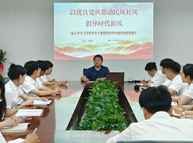党课以《深入学习〈习近平关于加强党的作风建设论述摘编〉以优良的党风带动民风社风,倡导时代新风》为题,组织员工党员进一步学习了新时代加强党的作风建设的重大意义、本质属性和核心要义,加强党的作风建设的重大举措、重点任务和明确要求,加强党的作风建设的有效途径、重要目的和制度保障,号召员工党员坚持以学为先,筑牢思想根基,从习近平总书记重要论述中不断汲取智慧和力量,进一步全面把握“为什么要抓作风”这一根本性问题,全面把握“什么是优良作风”这一方向性问题,以过硬作风优学风、树新风,带头践行社会主义核心价值观,讲党性、重品行、作表率。