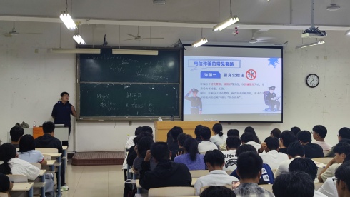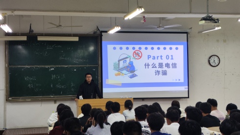王浩帆结合近期高校警情,从电信网络诈骗的特征和惯用伎俩入手,系统梳理了电信诈骗的隐蔽性、欺骗性、危害性,重点剖析了五类高发套路:冒充“公检法”恐吓转账;冒充银行客服以“账户异常”诱骗输入验证码;冒充电信运营商以“套餐升级”诱导点击钓鱼链接;冒充亲朋好友“急用钱”实施精准诈骗;冒充“内部票代”以代购演唱会、机票为由收取定金。通过以案说法,他引导同学们增强法治安全意识和是非辨别能力,将今日所学知识内化于心、外化于行,切实提高识别和防范电信诈骗的能力,共同营造安全、稳定、和谐的校园环境,为专注学业奠定坚实的安全基础。