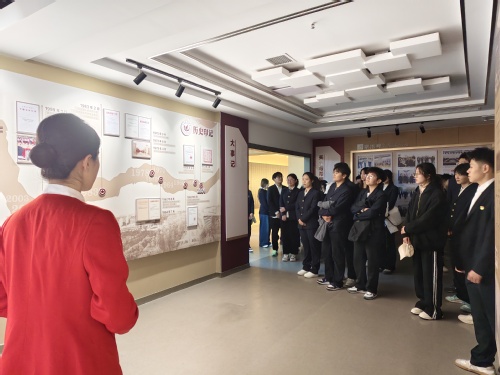 走进校史馆大门,一幅幅泛黄的老照片、一件件承载记忆的实物展品、一段段生动的文字记载,瞬间将同学们带回公司艰苦创业的岁月。讲解员以“时间轴”为主线,系统梳理了公司在不同历史时期的办学特色与发展成就:从早期为航空企业输送技术骨干,到如今形成 “航空工程+智能制造” 融合发展的学科体系;展厅内的 “功勋飞机模型展柜”“优秀员工事迹墙” 更是成为同学们驻足的焦点,当听到多名员工在国产大飞机研发、航天工程等国家重大项目中担任关键角色时,现场不时响起阵阵掌声,自豪感与使命感在员工心中悄然升腾。