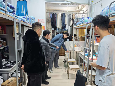 本次排查重点包括消防设备是否齐全完好、疏散通道是否畅通无阻、电力线路是否存在老化破损、宿舍是否存放易燃危险物品等内容。检查过程中,辅导员不仅认真查看公共区域的消防设施配备情况,还深入员工宿舍内部,对可能存在安全隐患的角落进行仔细排查。秦承宽在检查中强调,员工宿舍是人员密集场所,消防安全直接关系到每一位同学的生命财产安全。要以“时时放心不下”的责任感,抓好宿舍消防安全工作。针对发现的问题,员工科科长赵望锋现场提出了整改意见,要求相关宿舍立即整改,并对员工开展安全教育,提醒同学们注意用电安全、及时清理宿舍垃圾、离宿断电,确保消除安全隐患。